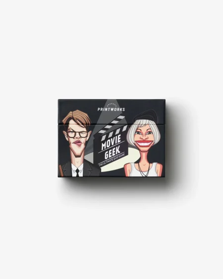 KD12.100Who among your friends is the ultimate movie geek? Let’s settle it right here, right now. The rules are straightforward: drag a card to challenge your opponent. Your friend must identify the character on the card and the movie in which that character stars. If they fail, return the card to the deck, and let the next person take a shot. If they succeed, they’re primed for some in-depth, hardcore questions about that film to earn extra points. Let the battle of the movie enthusiasts begin!