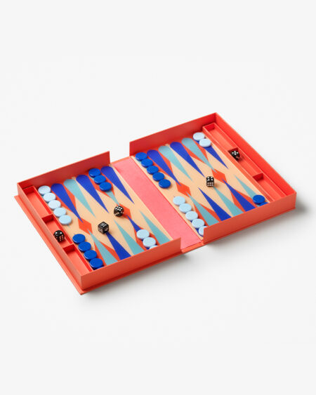 KD22.000Art of Backgammon features a 20th-century makeover with bold red and blue colors and typography, giving it an artsy impression. The set opens like a book, displaying a sleek, thin layer of acrylic board, inviting you to enjoy hours of strategic play. It also comes with easy-to-read instructions in English, French, and German. Suitable for 2 players and recommended for ages 5 and above.