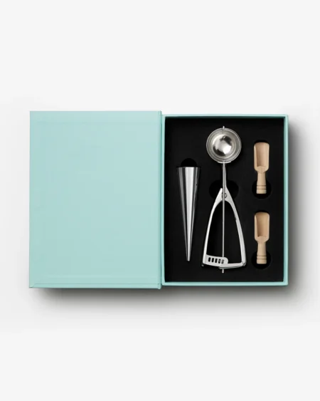 KD18.200Discover our Essential Kit for Pasta Nights, cleverly disguised as an elegant book-like box. It is the perfect fusion of aesthetics and functionality. Upon opening it, you will discover all the essential tools for hosting successful pasta dinners. All tools are made of stainless steel and are dishwasher safe. -