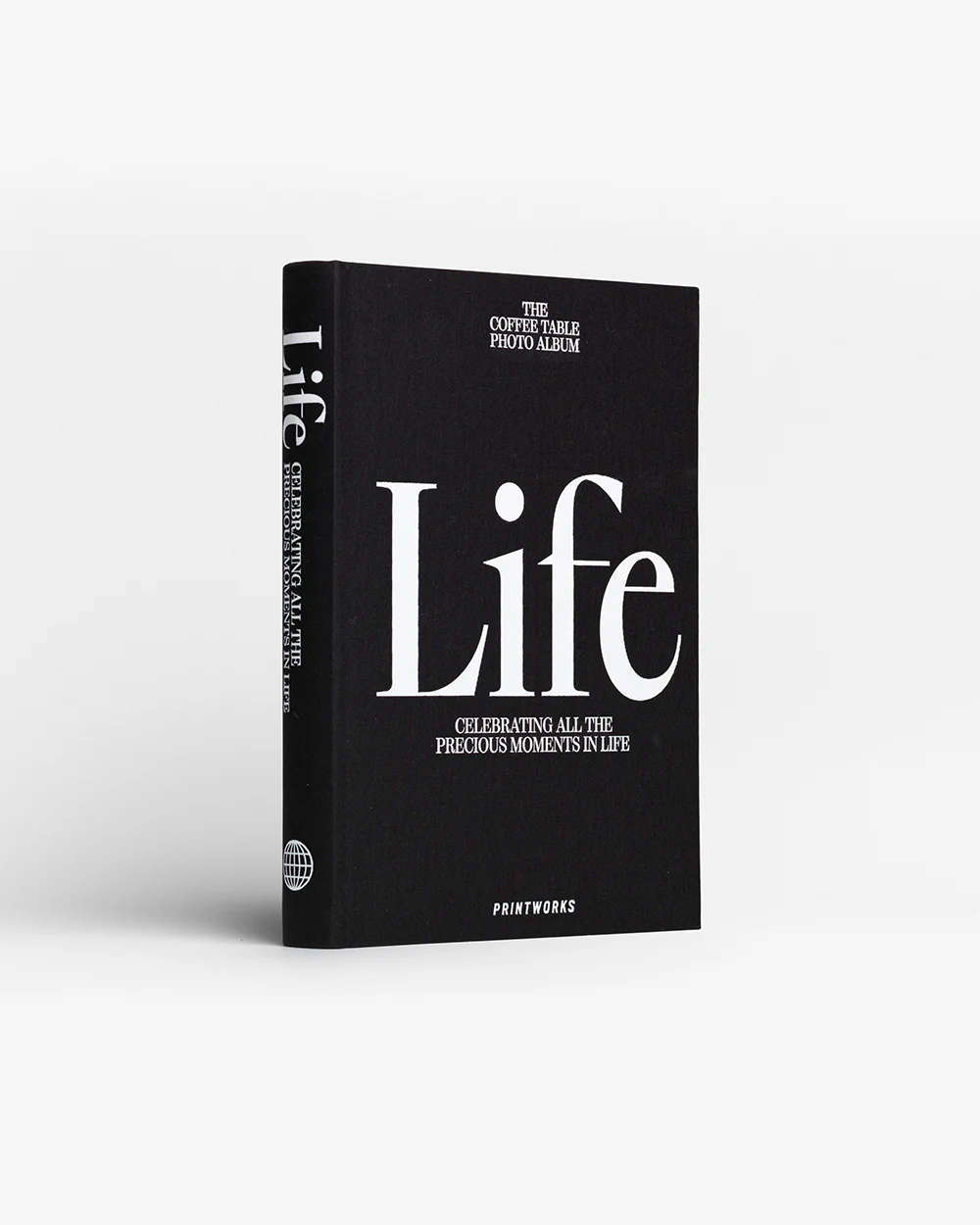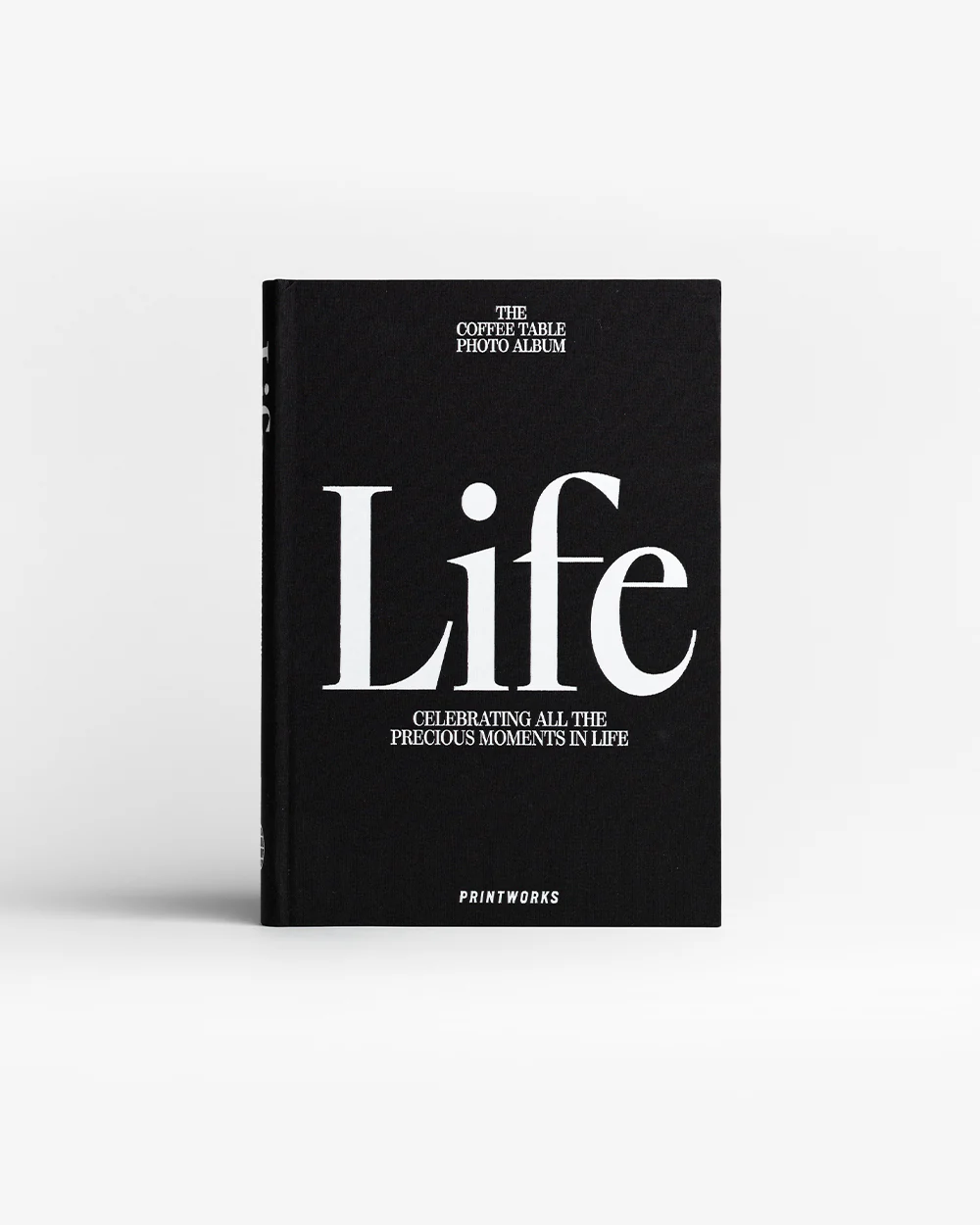 Discover our bestselling photo book Life, featuring a beautiful hardcover bookshelf design covered in black cloth with white text.