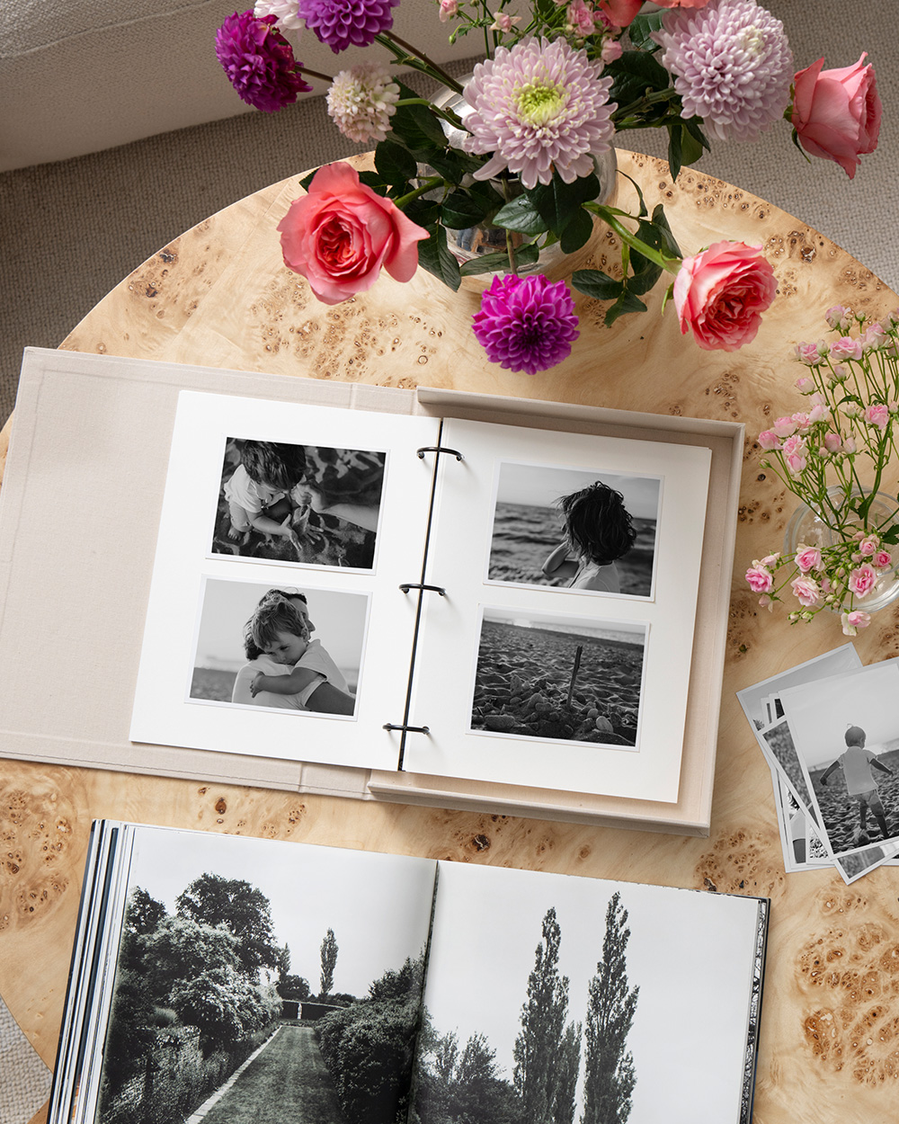 Discover our coffee table photo album Family and Friends, featuring a soft cloth cover in elegant beige.